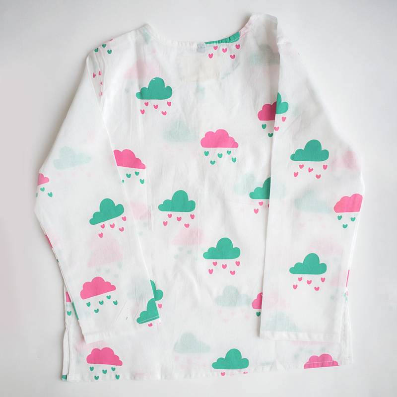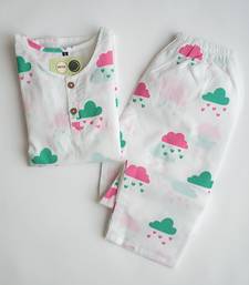 White multicolor hand screen printed unisex sleepwear set- set of 2