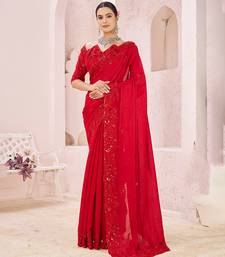 Red embroidered crepe saree