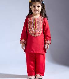 Red embroidered silk kurta with pant
