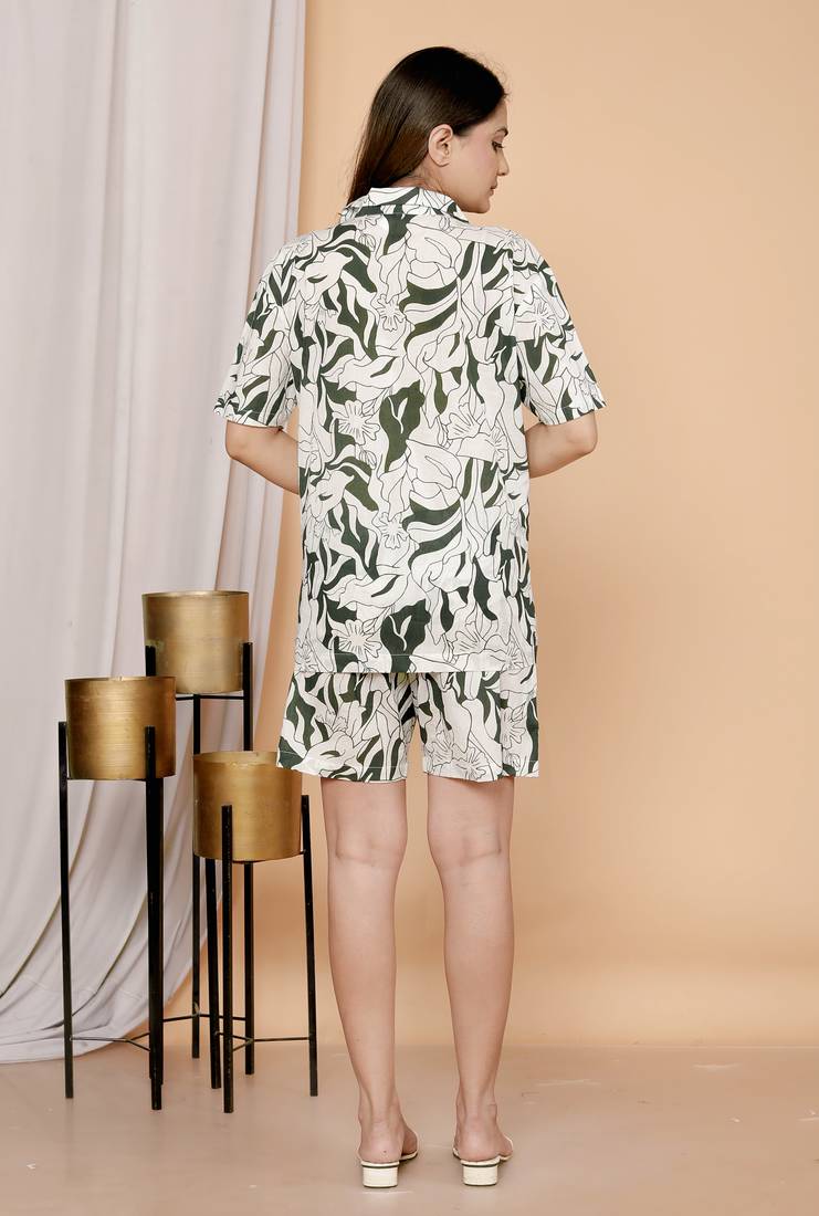 | Product Description | Elevate Your Comfort With This Women’s Premium Rayon Floral Print Co Ord Set, The Ultimate Versatile Addition To Your Wardrobe. Designed For Effortless Style, This 2 Piece Outfit Features A Soft Short Sleeve Button Down Shirt And Matching Comfortable Shorts, Making It The Perfect Summer Wear Essential. Crafted From Breathable, High Quality Rayon Fabric, It Ensures A Lightweight And Airy Feel, Ideal For Beachwear Vacations, Poolside Lounging, Or A Stylish Resort Wear Look. Whether You're Searching For Trendy Loungewear For Women, A Chic Nightwear Set, Or A Breezy Holiday Outfit, This Vibrant Black And White Botanical Print Delivers. |