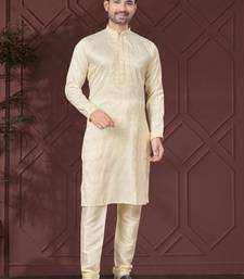 | Product Name | Cream Pure Silk With Embroidery Work Kurta Pyjama For Mens Wear | |