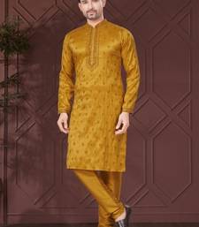 | Product Name | Yellow Pure Silk With Embroidery Work Kurta Pyjama For Mens Wear | |