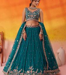 Teal georgette fabric sequins and thread embroidery semi-stitched lehenga set with blouse and dupatta