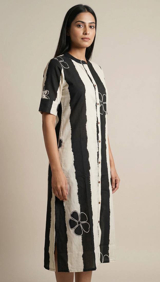 | Product Description | Navy Striped Embroidered Cotton Straight Kurti Is Designed For Women Who Love Comfort With Modern Elegance. The Breathable Cotton Blend Fabric Ensures An Easy All Day Feel. Featuring Hand Paint Style Vertical Stripes, Delicate Floral Thread Embroidery, A Mandarin Collar And A Full Button Down Front, This Kurti Is Perfect For Office Wear, Everyday Wear, And Casual Outings. Its Straight Fit Silhouette Creates A Sleek, Flattering Look Suitable For All Seasons. Seo Keywords Navy Kurti, Striped Kurti For Women, Embroidered Cotton Kurti, Button Down Kurti, Straight Kurti, Breathable Cotton Kurta, Office Wear Kurti, Trendy Kurti For Women, Daily Wear Kurti, Summer Cotton Kurti |