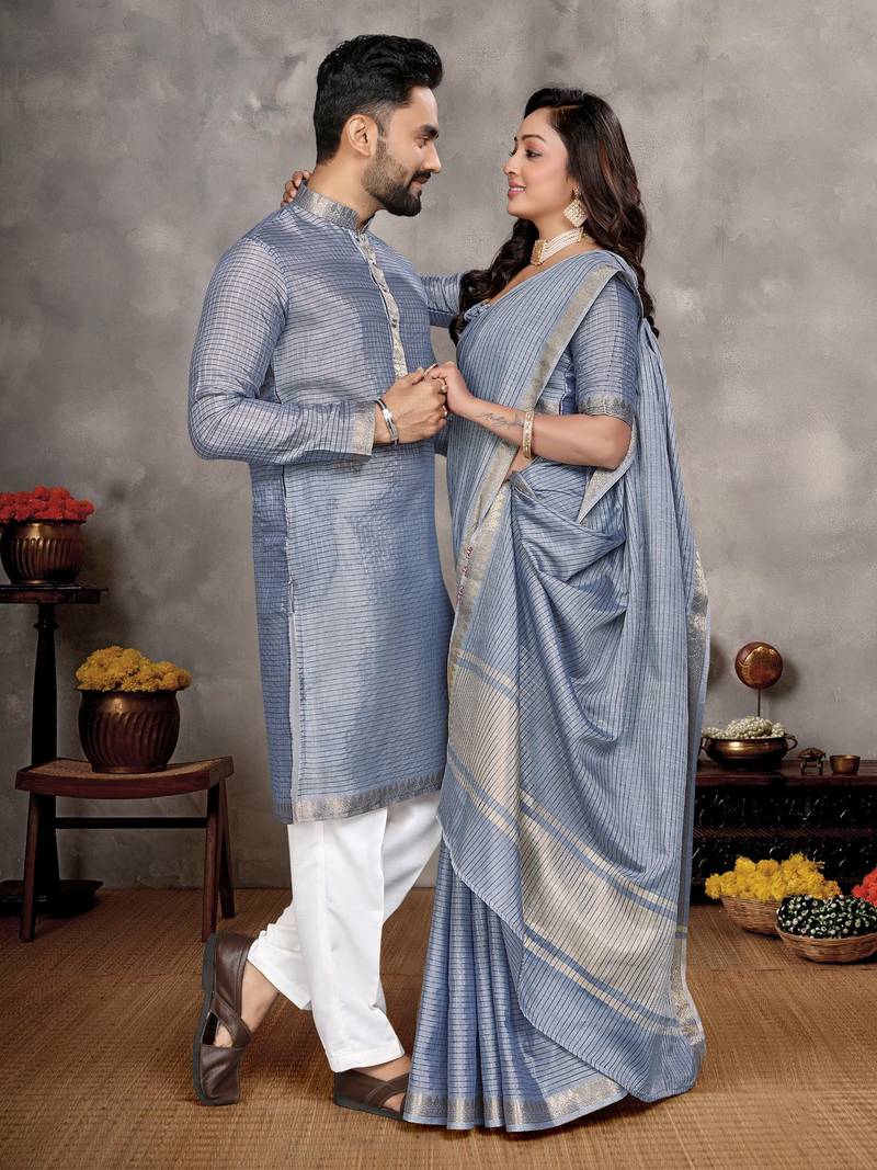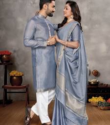 | Product Name | Blue Color Silk Blend Couple Combo Men's Kurta & Pajama & Women Saree Set | |