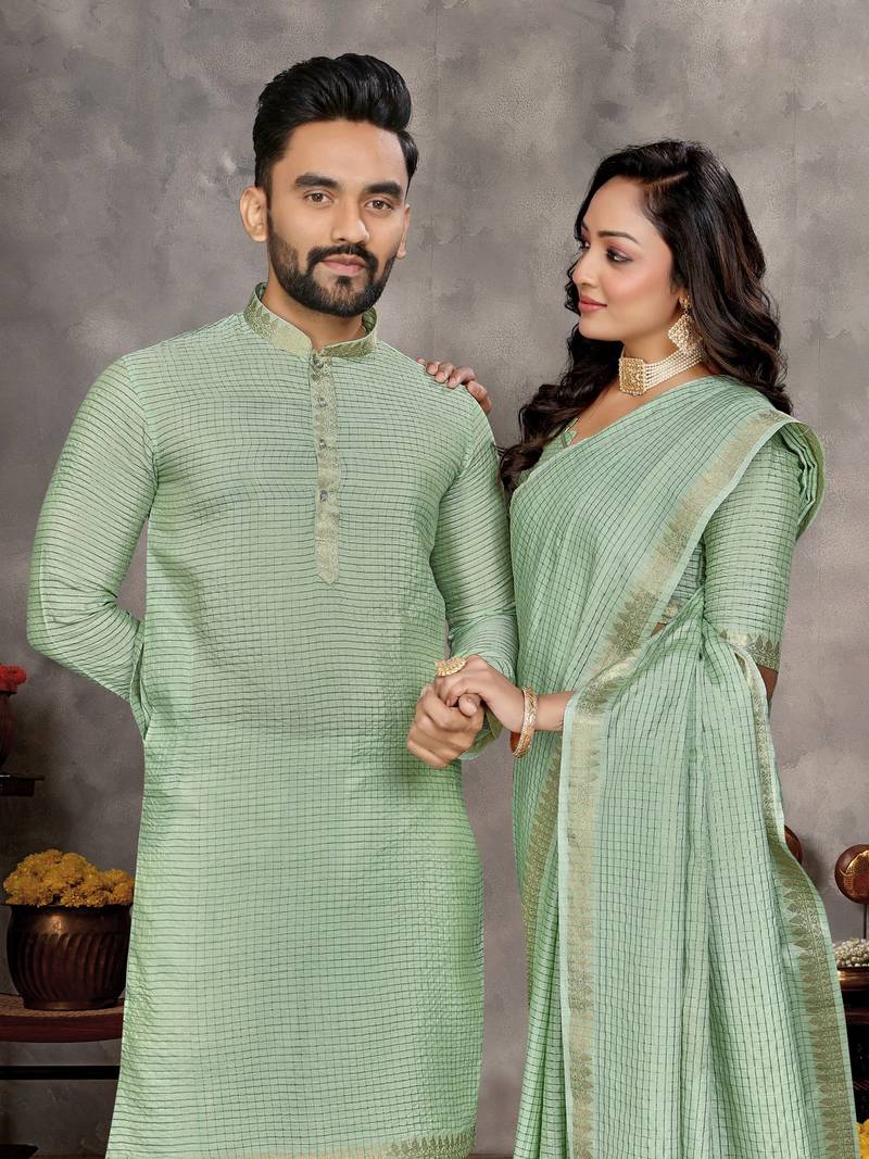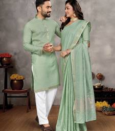 | Product Name | Light Green Color Silk Blend Couple Combo Men's Kurta & Pajama & Women Saree Set | |