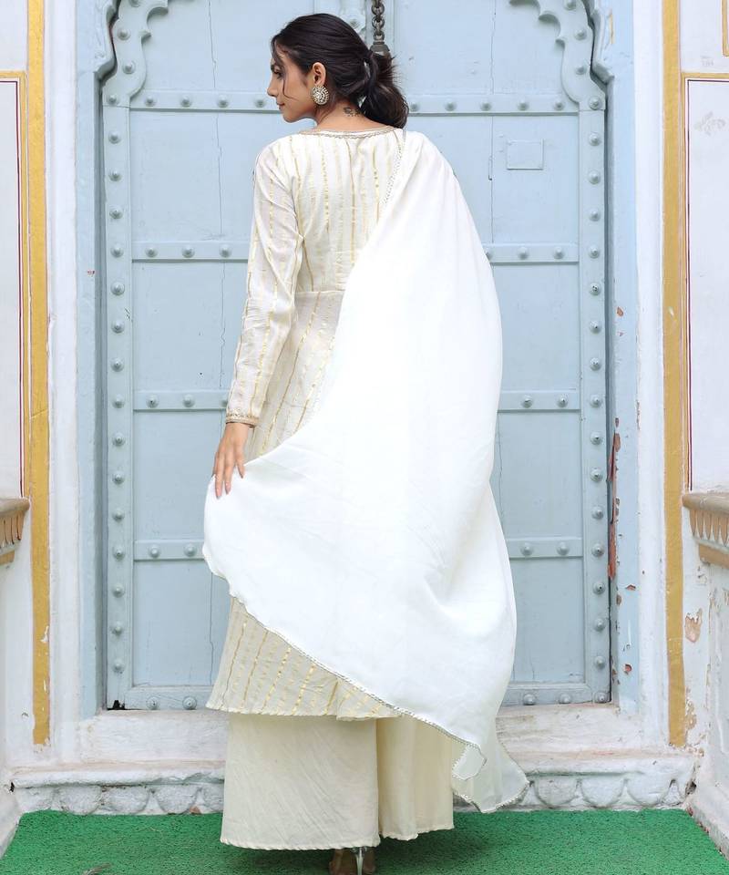 off-white striped angrakha style pure cotton anarkali kurta stitched