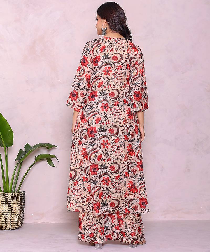 Beife Floral Printed Angrakha Kurta With Palazzo Set
