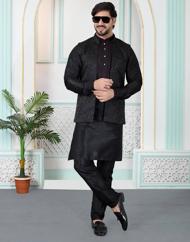 | Product Name | Black Jacquard 3 Peice Kurta Jacket Set For Men | |