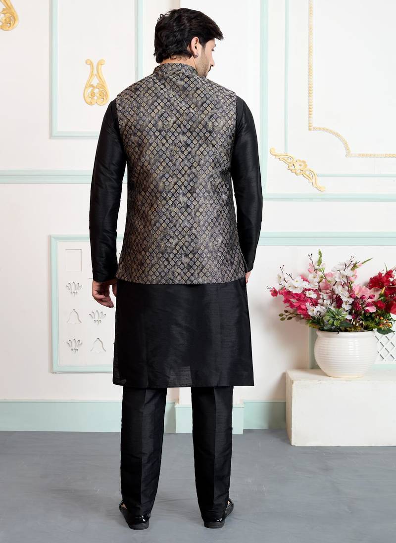 | Product Name | Black Jacquard 3 Peice Kurta Jacket Set For Men | |