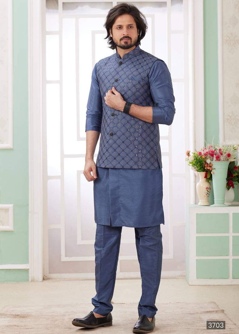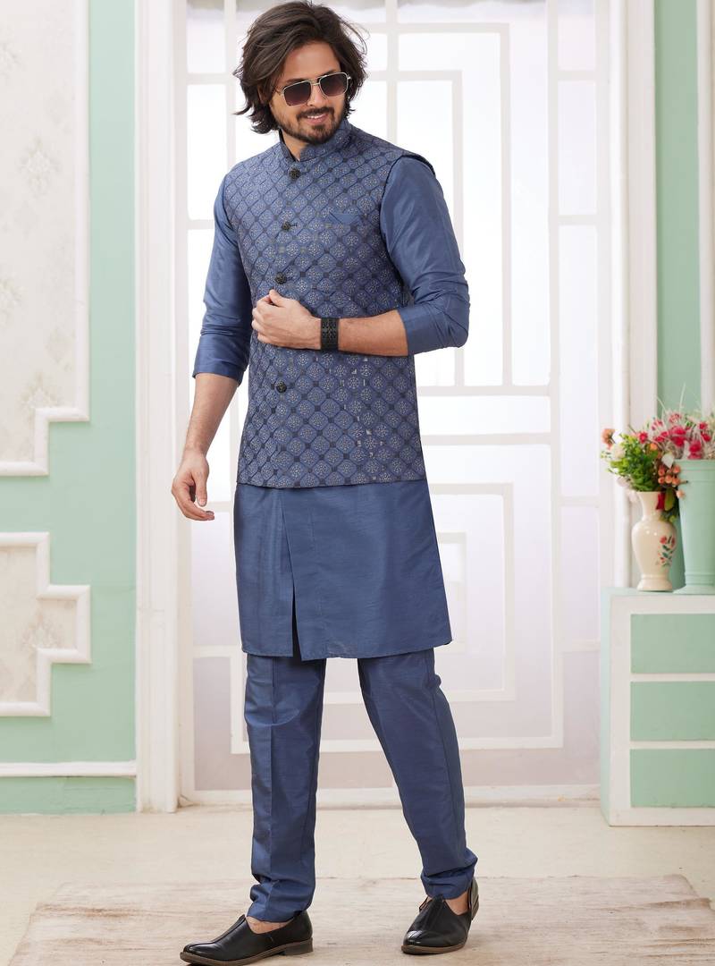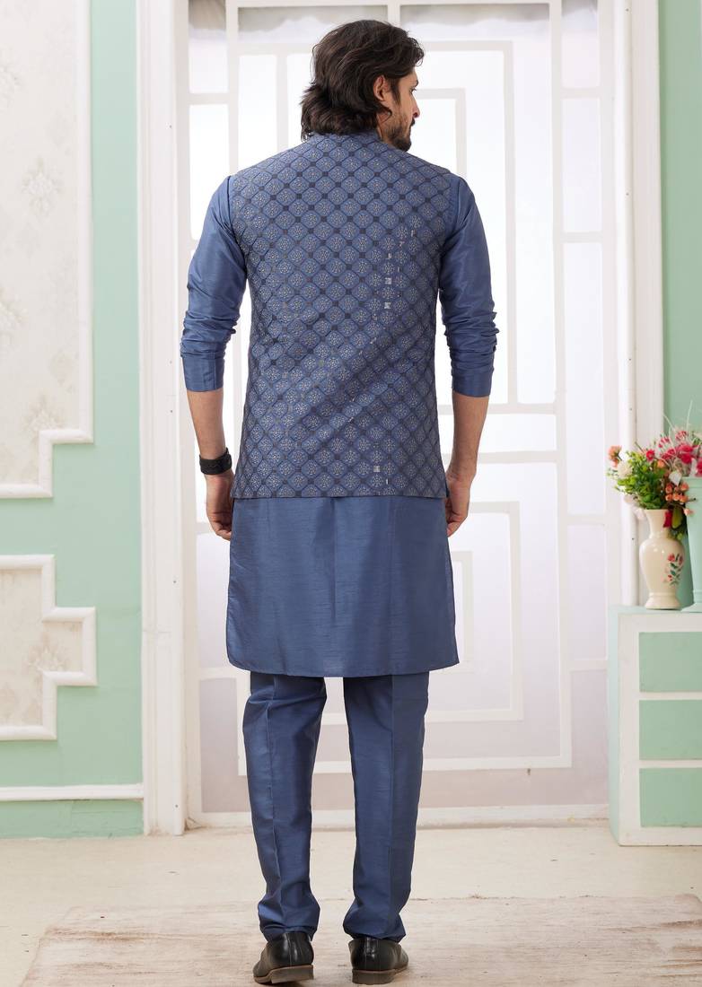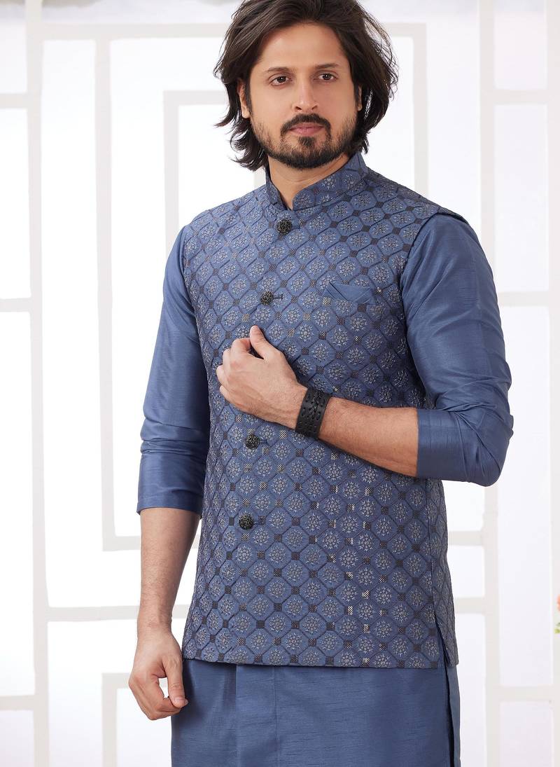 | Product Name | Blue Art Silk Kurta Jacket Set For Men | |