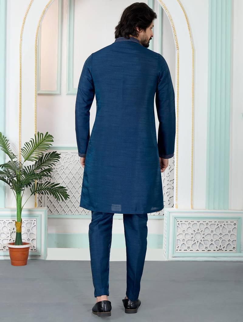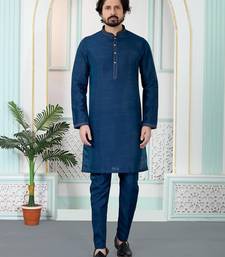 Blue art silk straight kurta for men