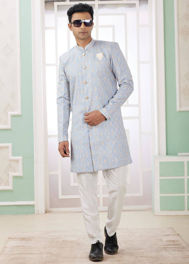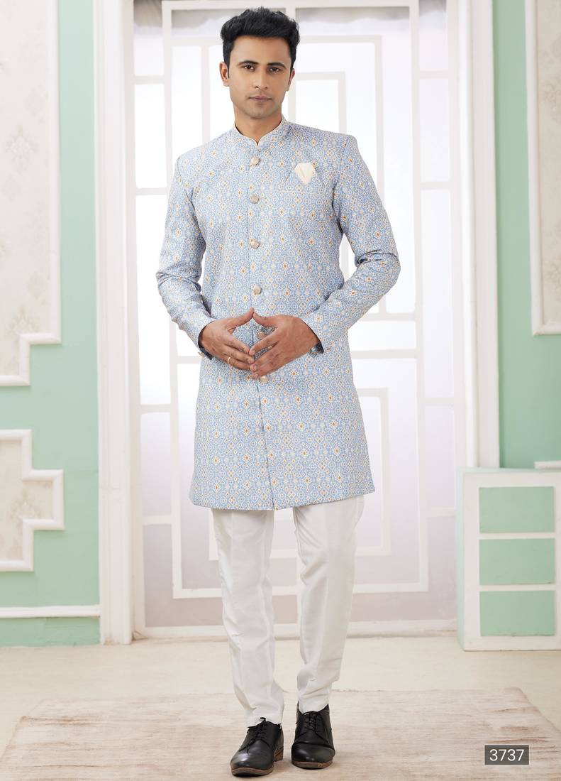 | Product Name | Blue Banarasi Jacquard Semi Indo For Men | |