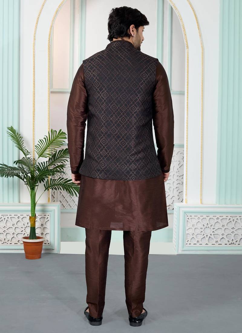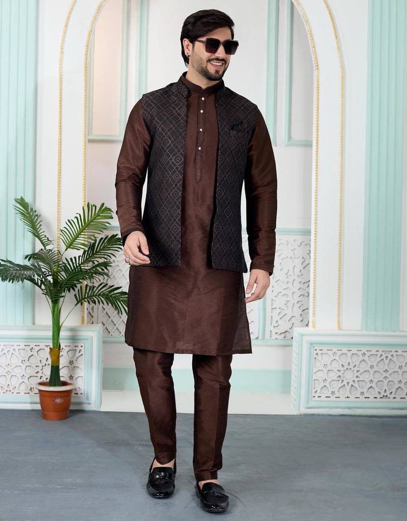 | Product Name | Brown Jacquard 3 Peice Kurta Jacket Set For Men | |