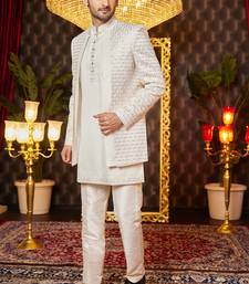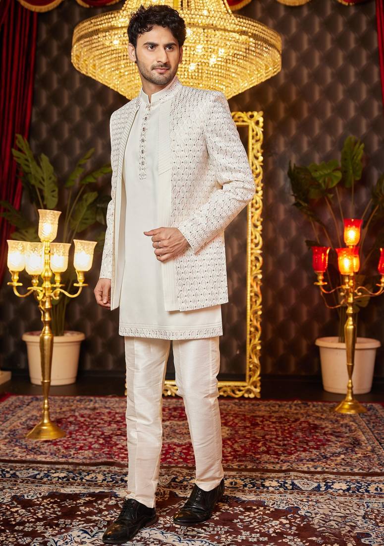| Product Name | Cream Computer Thread Work On Art Silk Kurta Jacket For Men | |