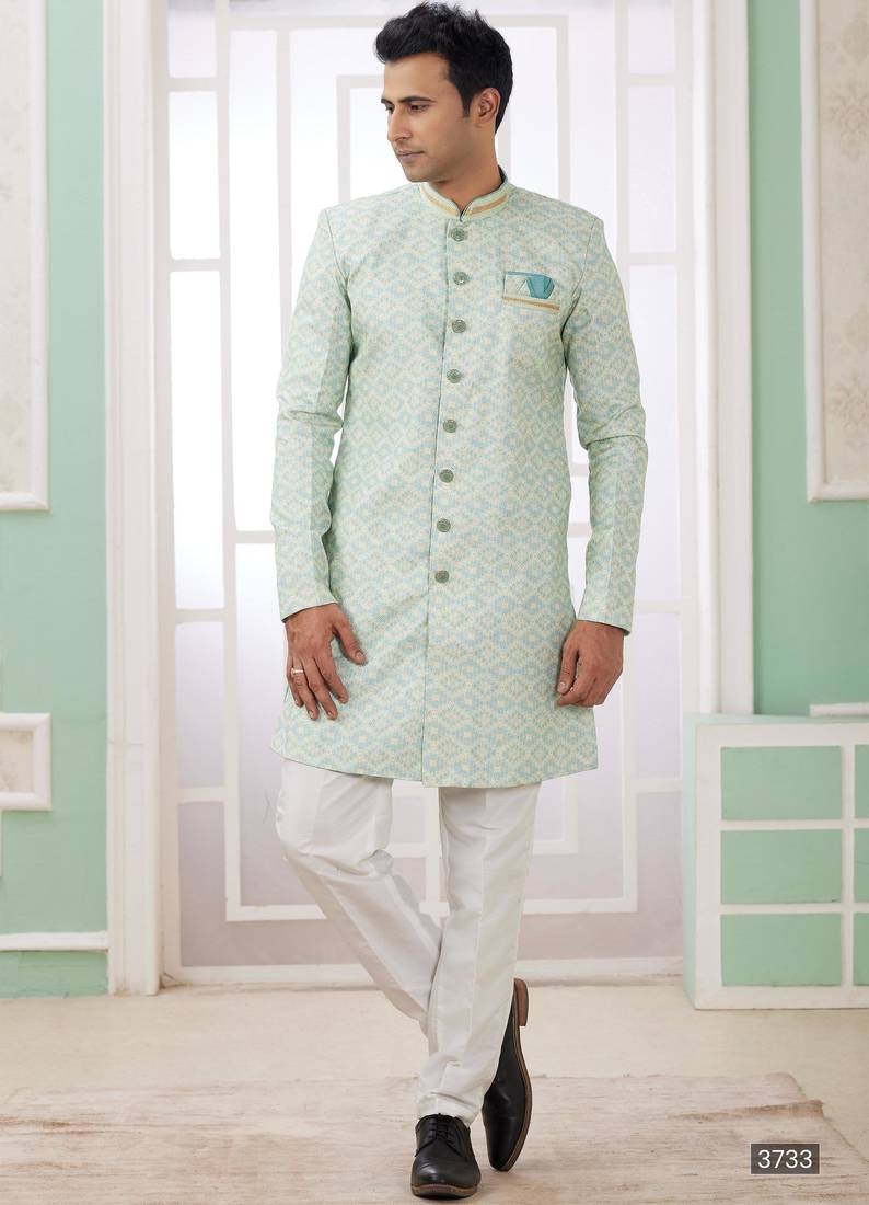 | Product Name | Green Banarasi Jacquard Semi Indo For Men | |