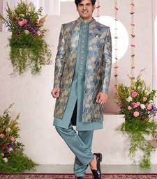 | Product Name | Green Computer Thread Work On Digital Print Silk 3 Peice Jacket Set For Men | |