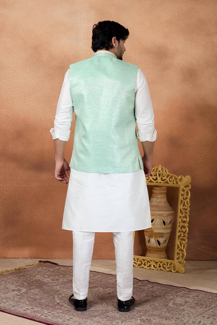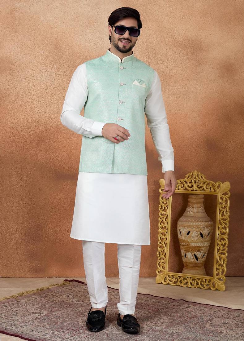 | Product Name | Green Jacquard 3 Peice Kurta Jacket Set For Men | |