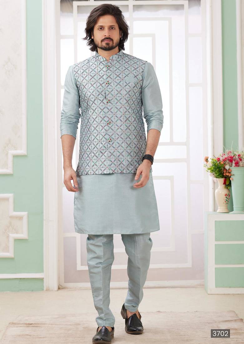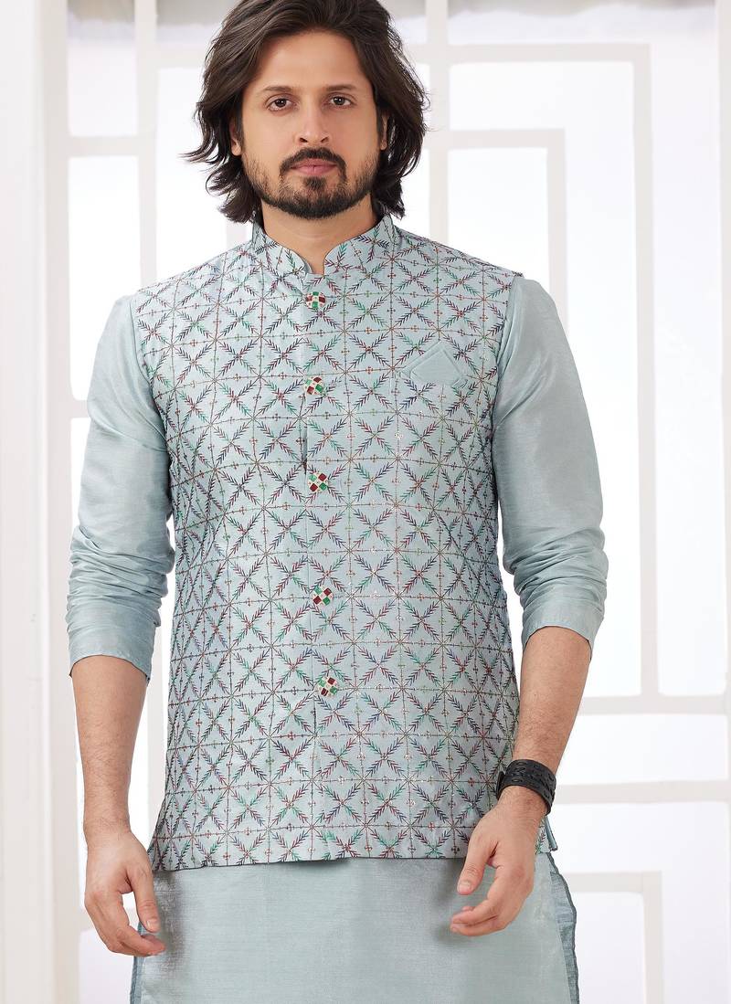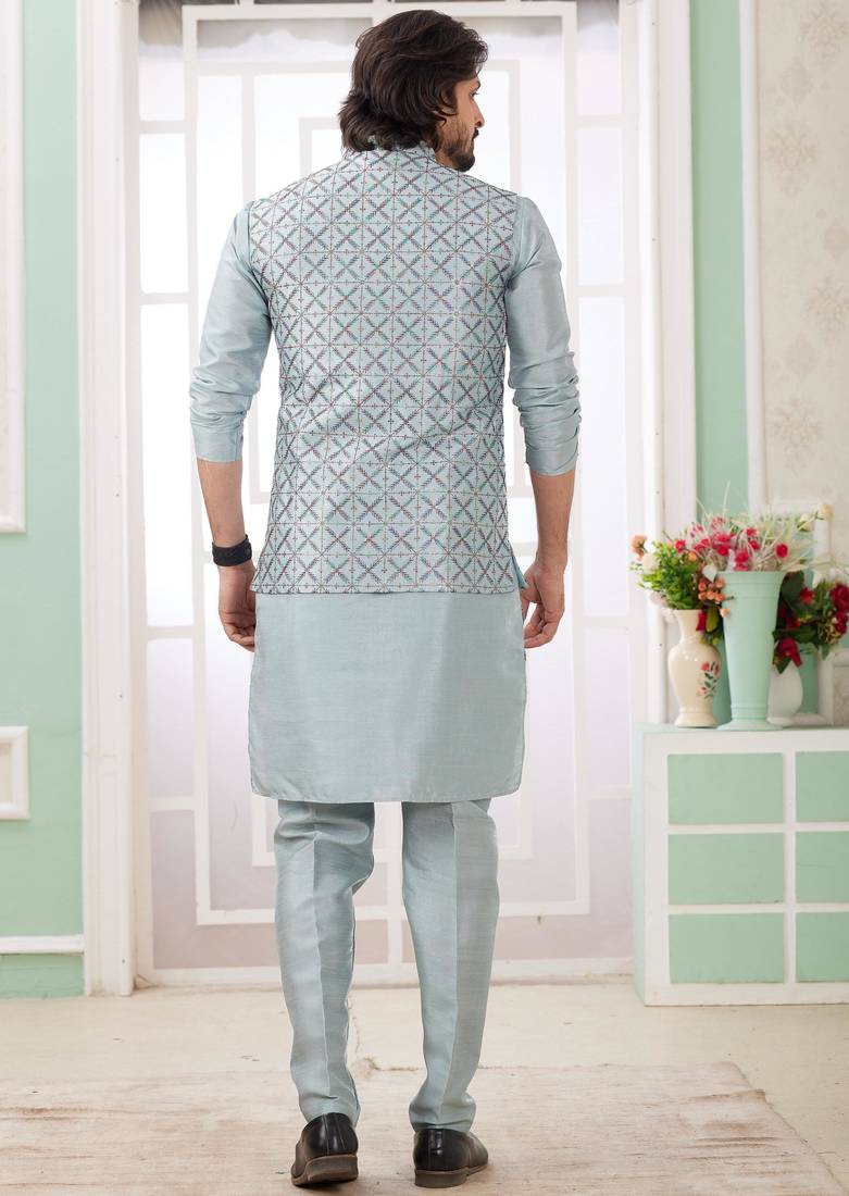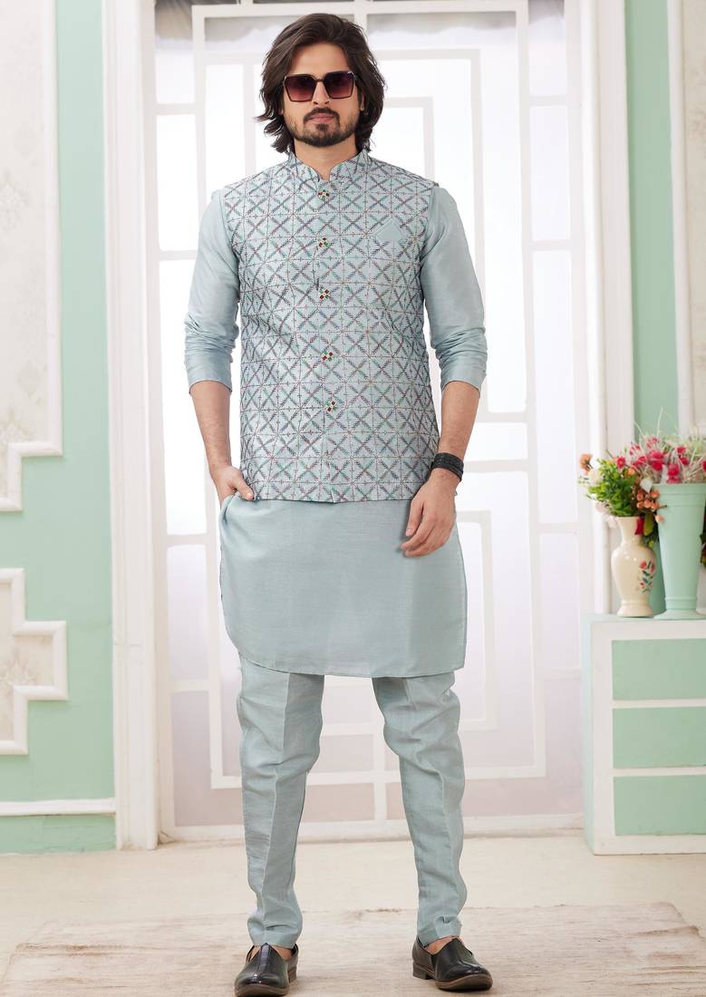 | Product Name | Grey Art Silk Kurta Jacket Set For Men | |