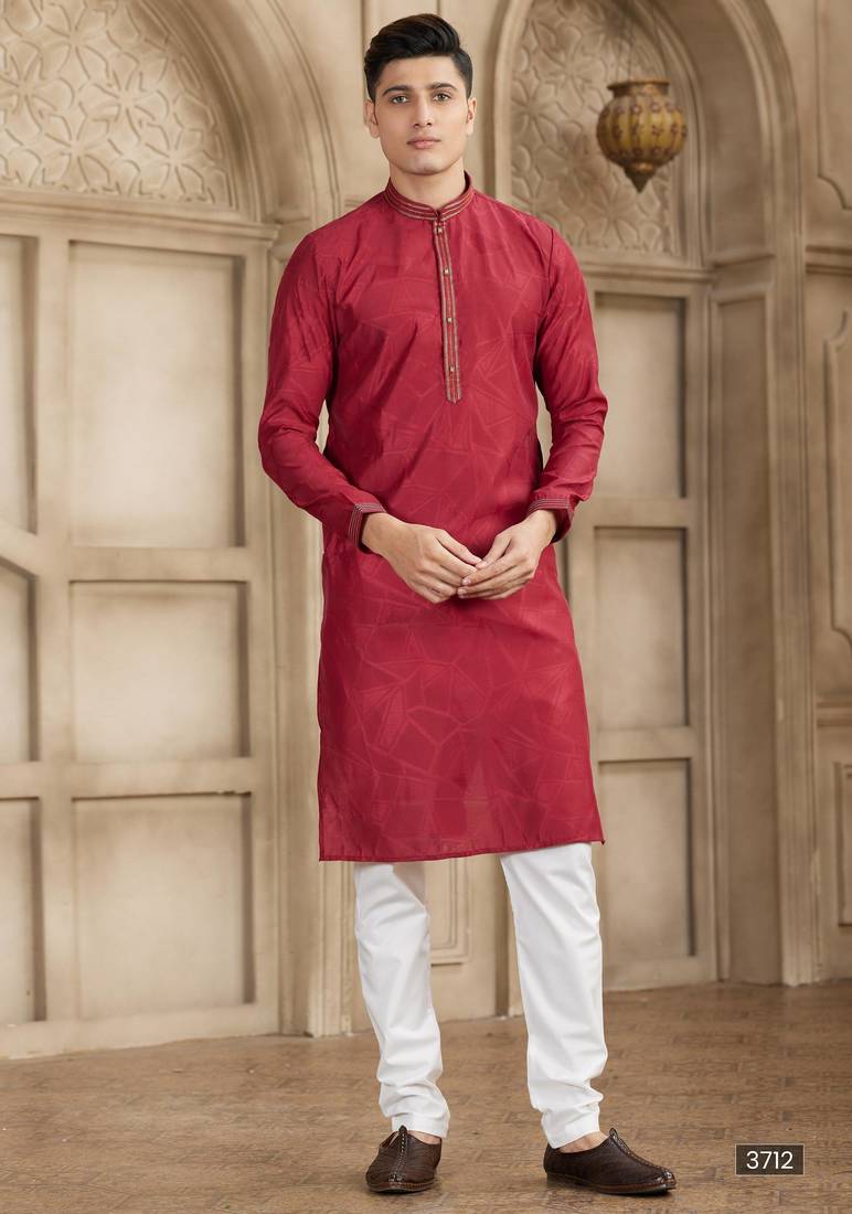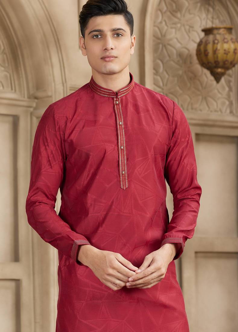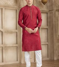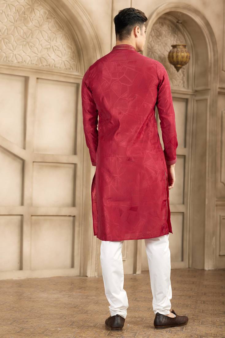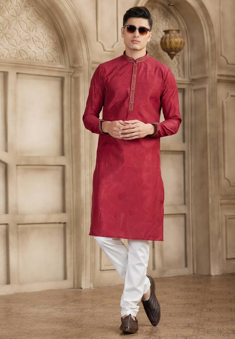 Maroon art silk kurta set for men