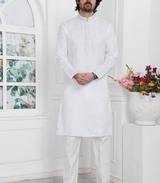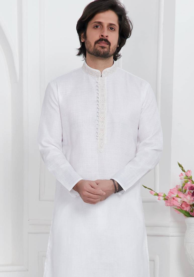 Off white linen cotton kurta for men