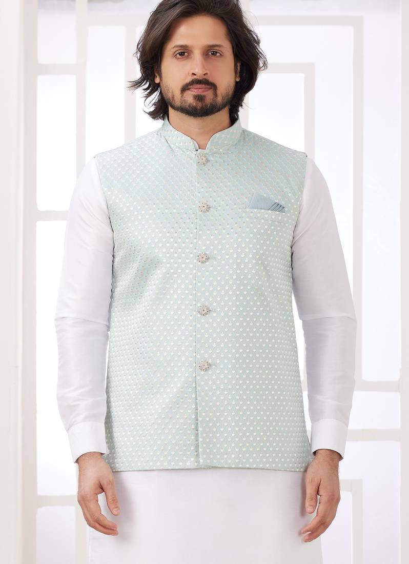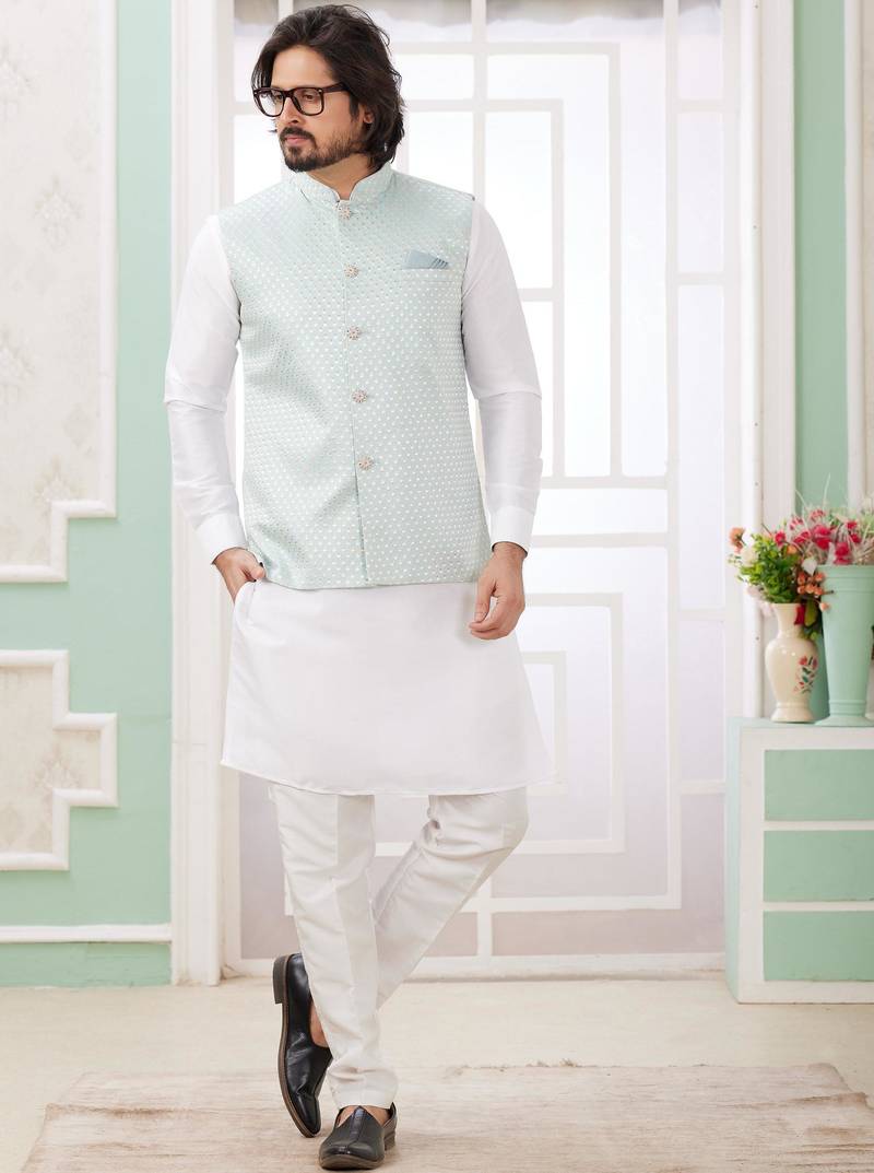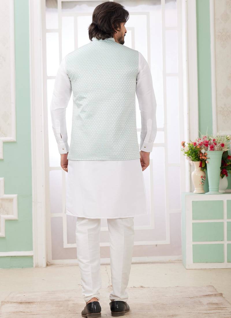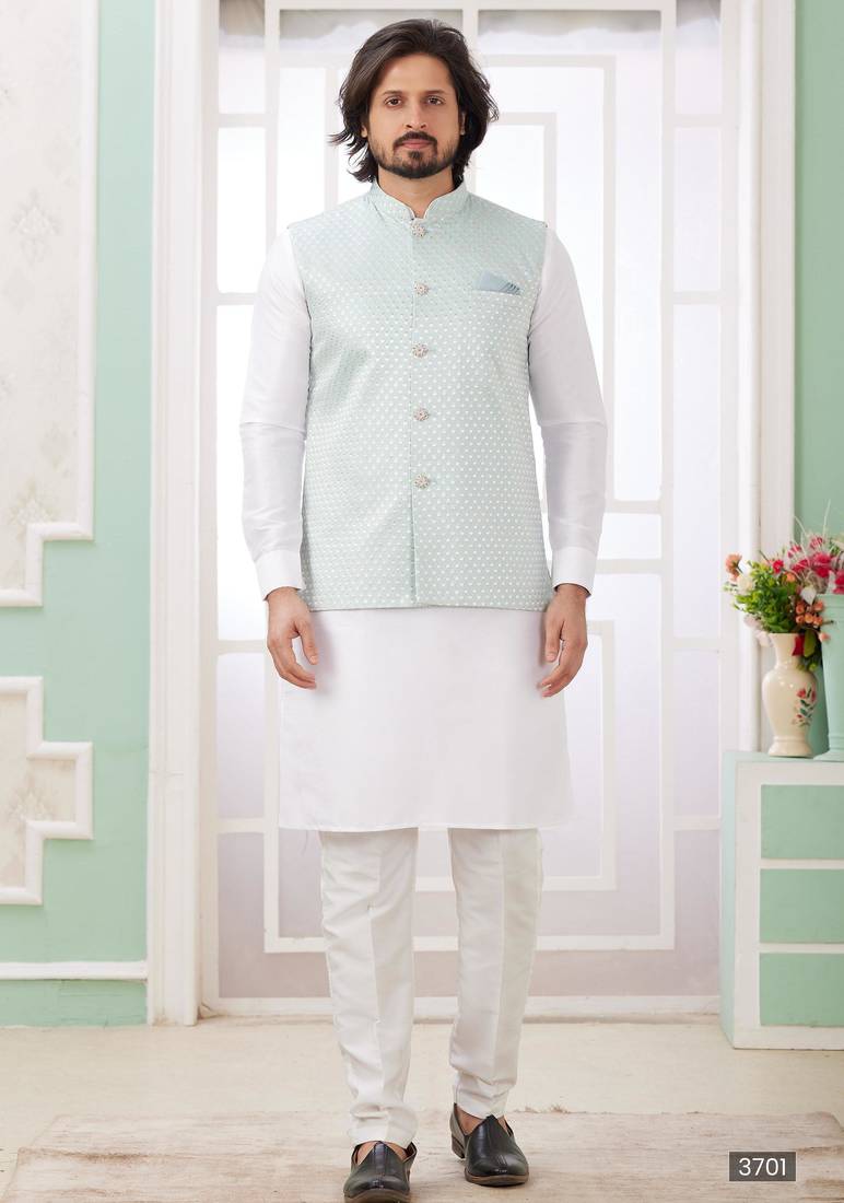| Product Name | Pista Art Silk Kurta Jacket Set For Men | |
