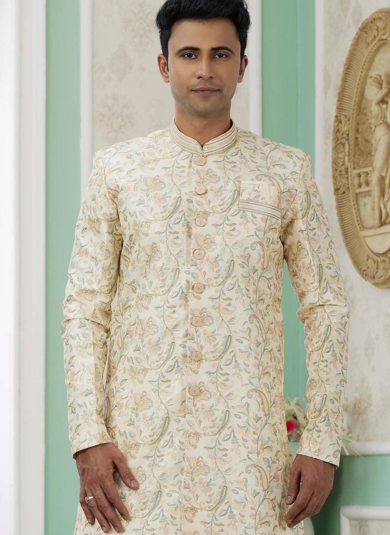 | Product Name | Yellow Banarasi Jacquard Semi Indo For Men | |