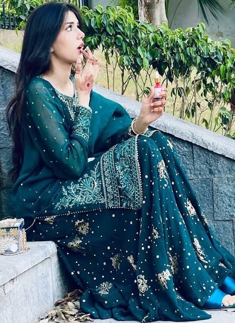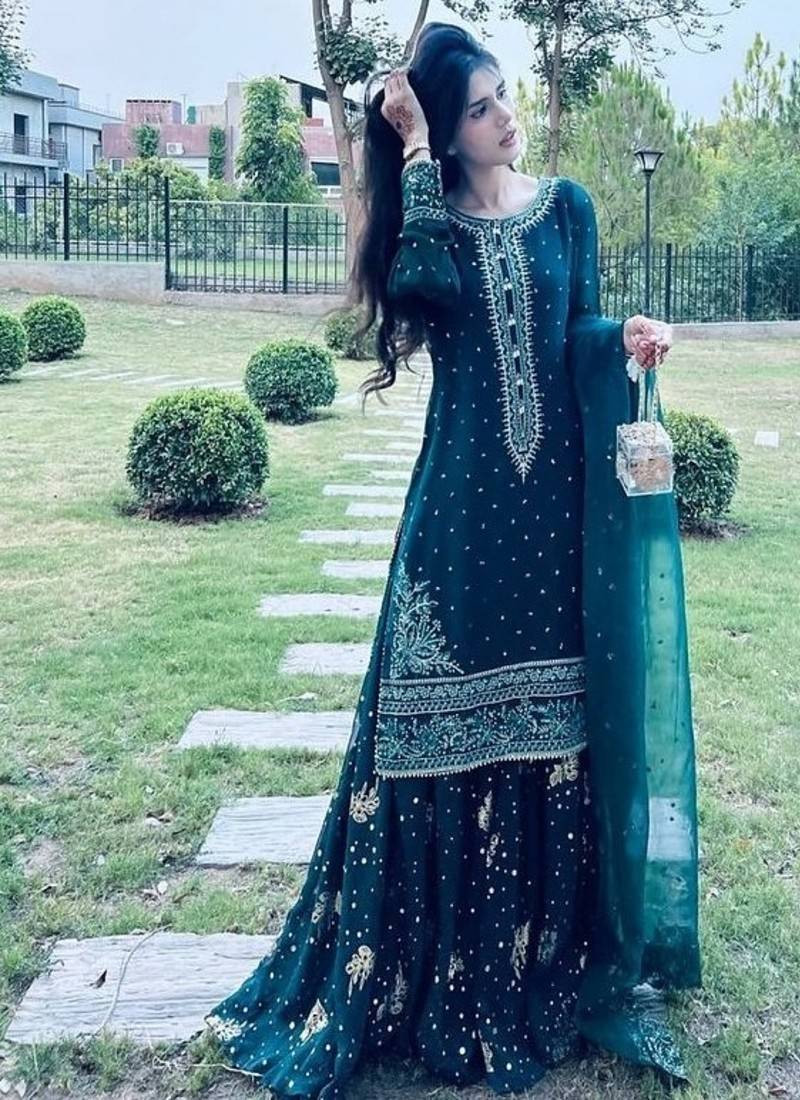 | Product Name | Embroidered Georgette Lehenga Style Suit In Deep Teal | |