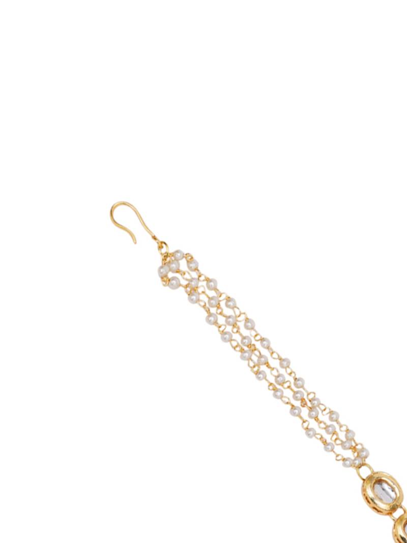 Product Description | Girls Gold Plated Kundan Studded & Beaded Hair Chain |