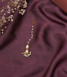 Product Description | Girls Gold Plated Kundan Studded & Beads Beaded Maang Tikka |