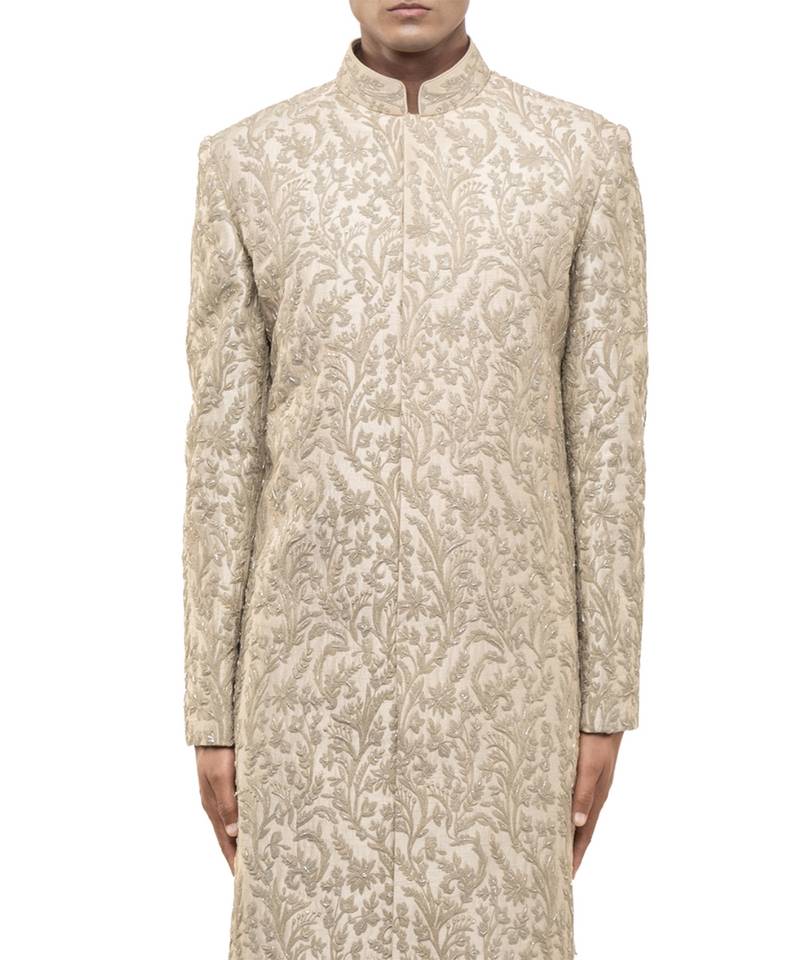 | Product Name | Beige Embroidered Silk Sherwani Set | |
