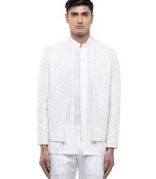White embroidered silk bandhgala set