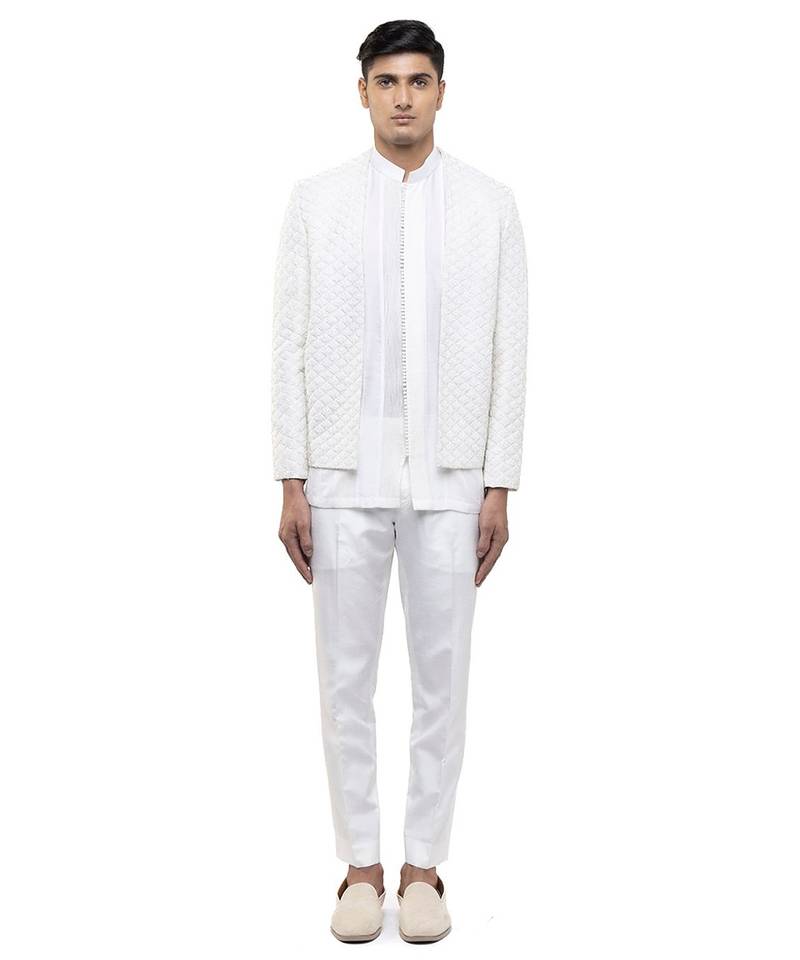 | Product Name | White Embroidered Silk Bandhgala Set | |