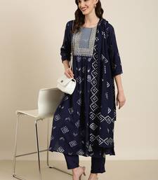 Product Name | Women's Round Neck Geometric Foil Print Navy Blue A Line Kurta And Trouser With Dupatta | |
