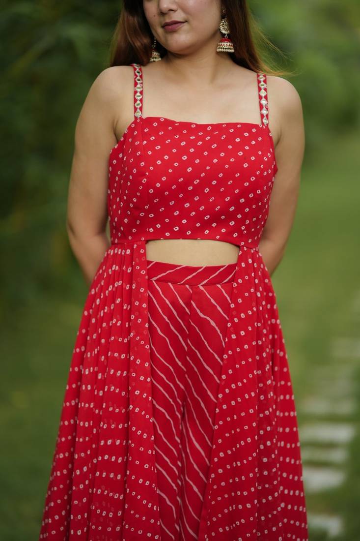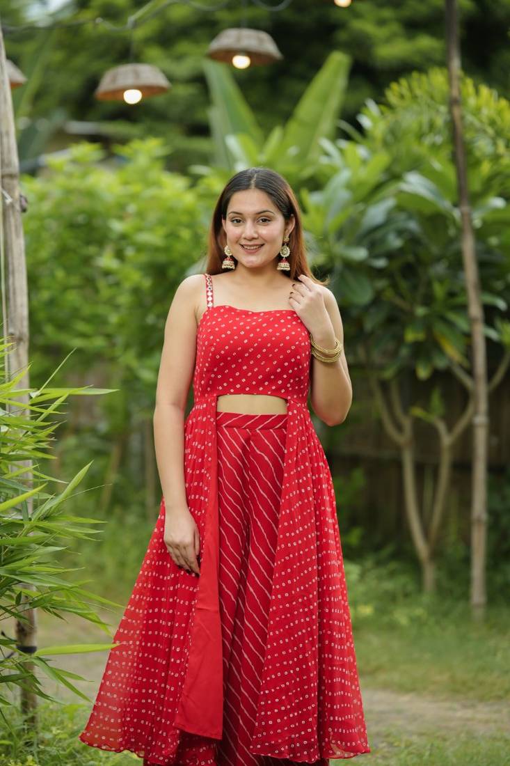 Product Description | Turn Heads In This Chic And Vibrant Red Leheriya Coord Set, Featuring Playful Prints With A Twist Of Bandhani And A Trendy Silhouette That Blends Tradition With Modern Flair. Perfect For Festive Evenings And Stylish Celebrations. |
