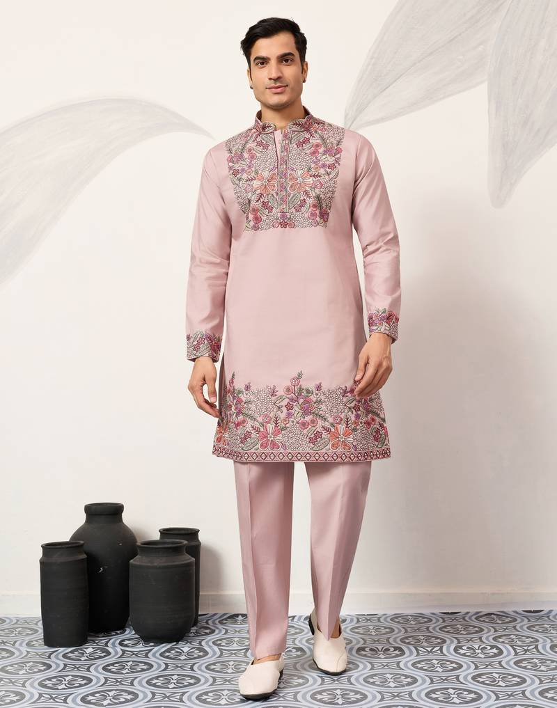 | Product Name | Dusty Pink Viscose Silk Thread & Sequins Embroidered Work Festival Marriage Party Wear Straight Mens Kurta With Pant | |