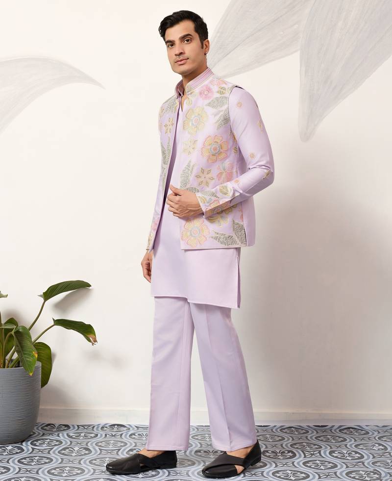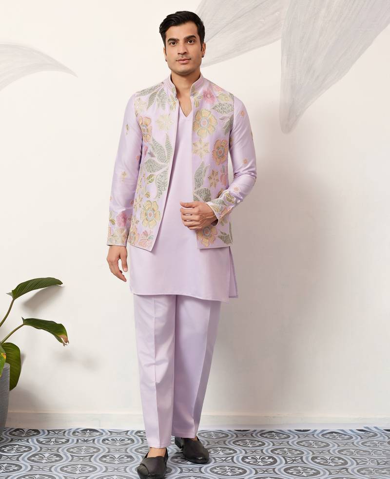 | Product Name | Lavender Satin Silk Thead With Sequins Embroidered Work Wedding Function Festival Party Wear Straight Kurta Pant Koti | |