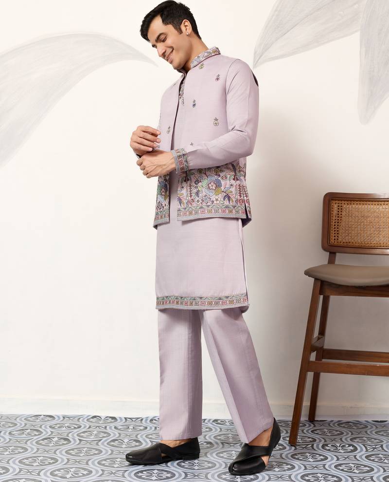 | Product Name | Lavender Viscose Silk Thead With Sequins Embroidered Work Wedding Function Festival Party Wear Straight Kurta Pant Koti | |
