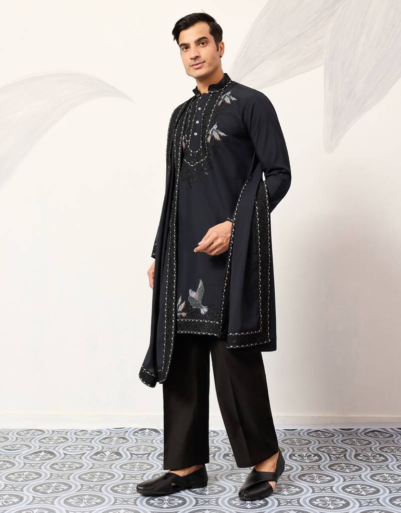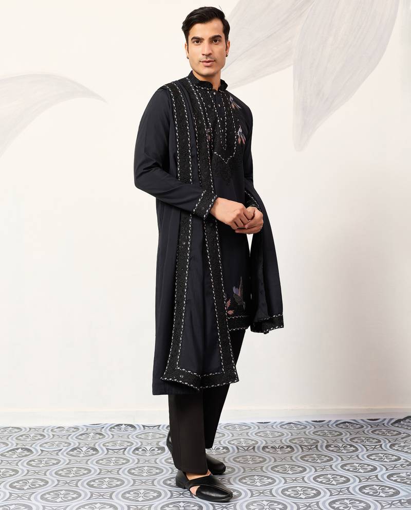 | Product Name | Navy Blue Viscose Silk Thread & Sequins Embroidered Work Function Festival Marriage Party Wear Straight Kurta Dupatta | |