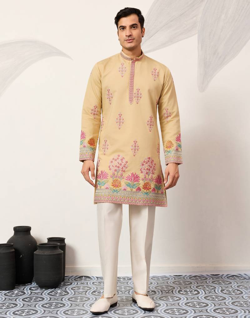 | Product Name | Yellow Viscose Silk Thread & Sequins Embroidered Work Wedding Festival Marriage Party Wear Straight Mens Kurta | |