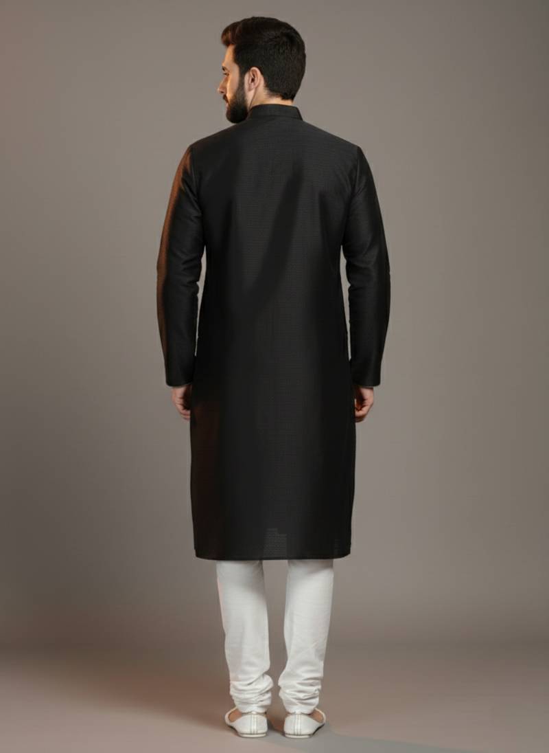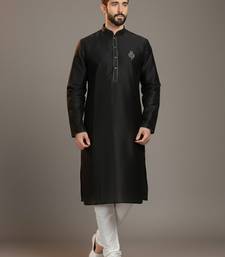 Product Name Black Dupion Silk Embroidered Kurta Set