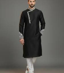 Black dupion silk embroidered kurta set