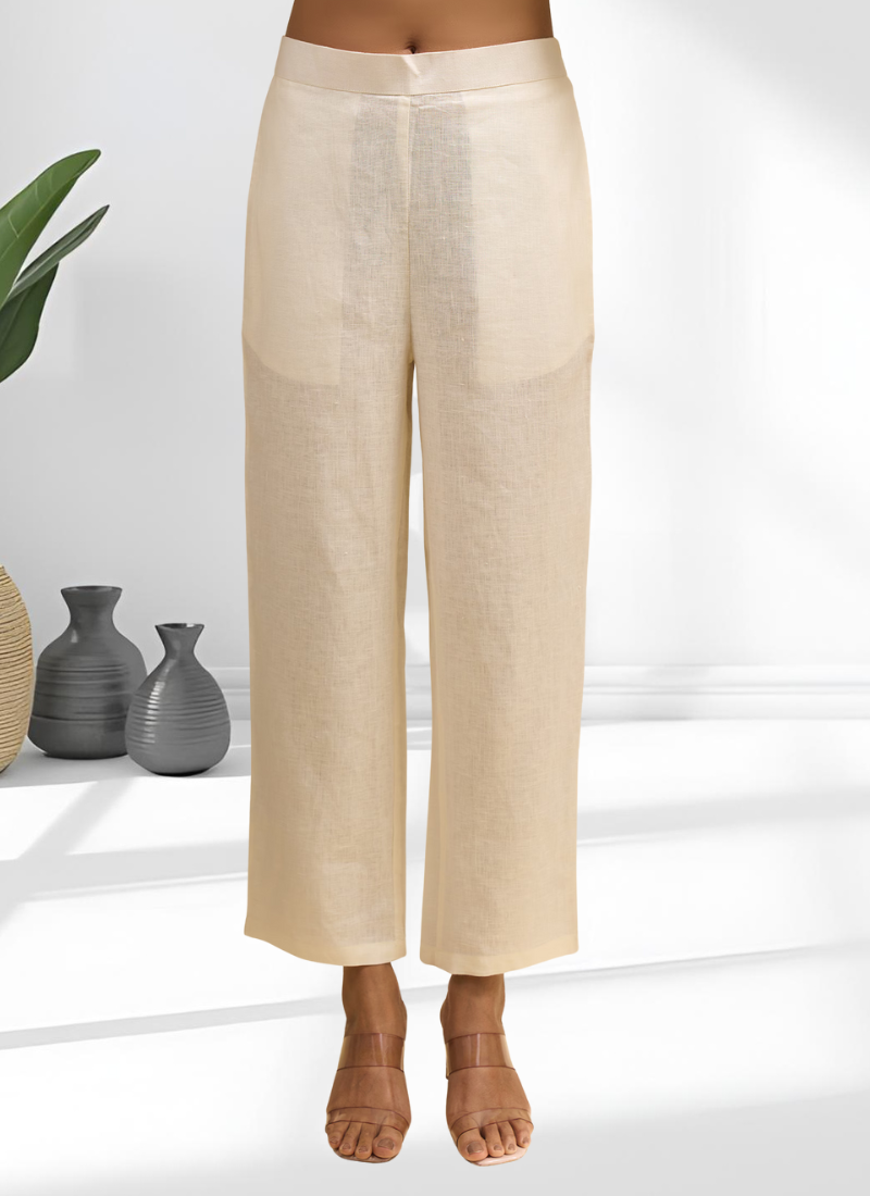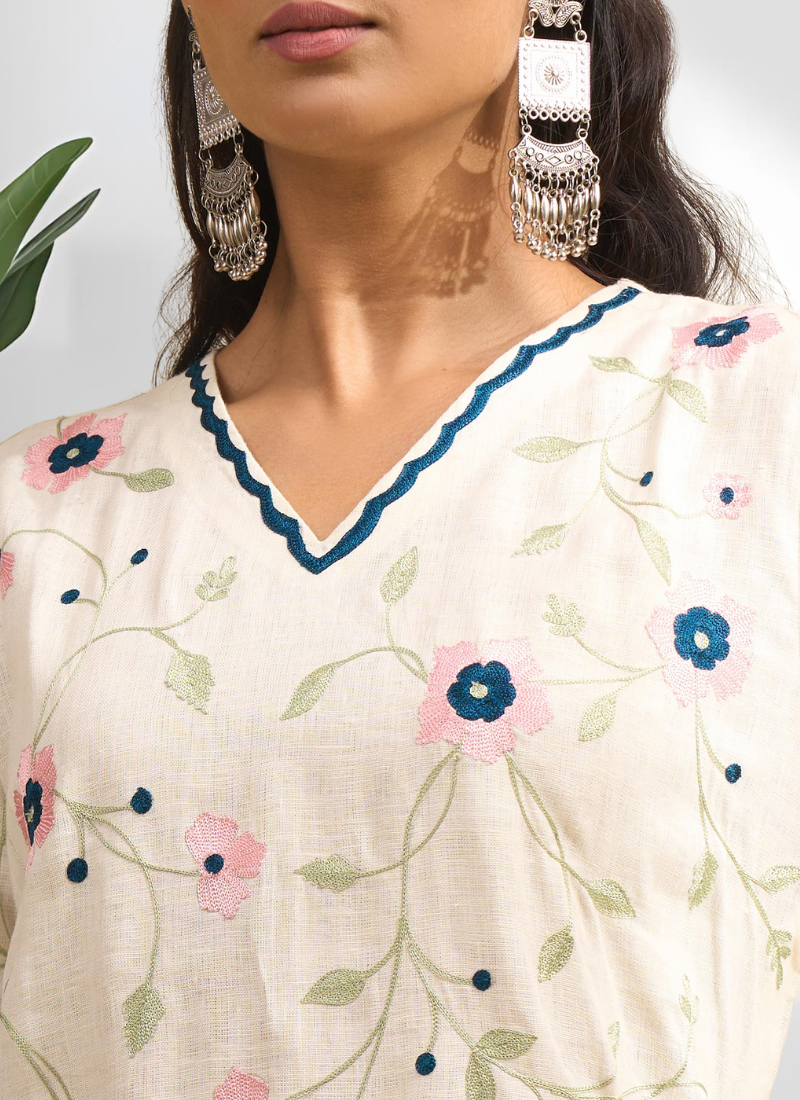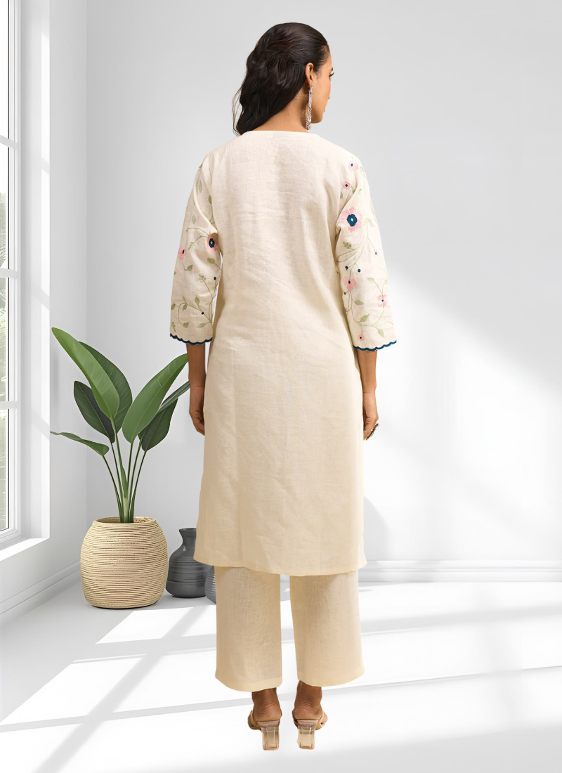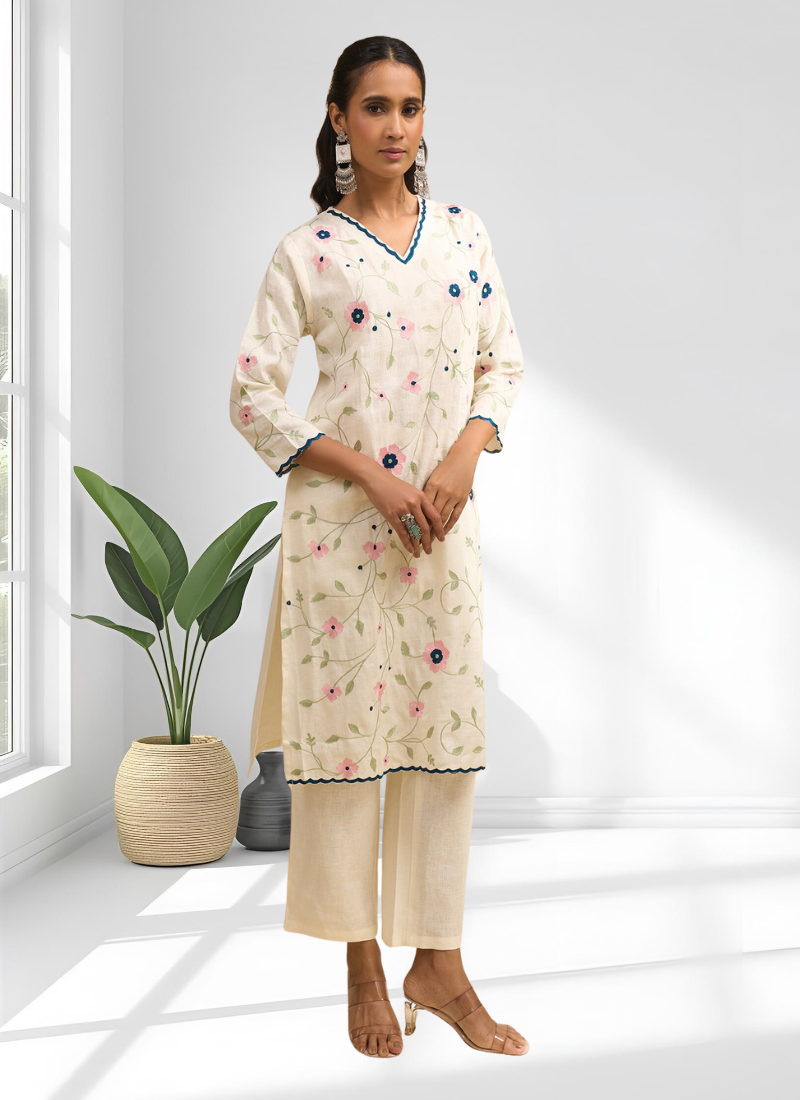 Cream long kurta with pant for women's