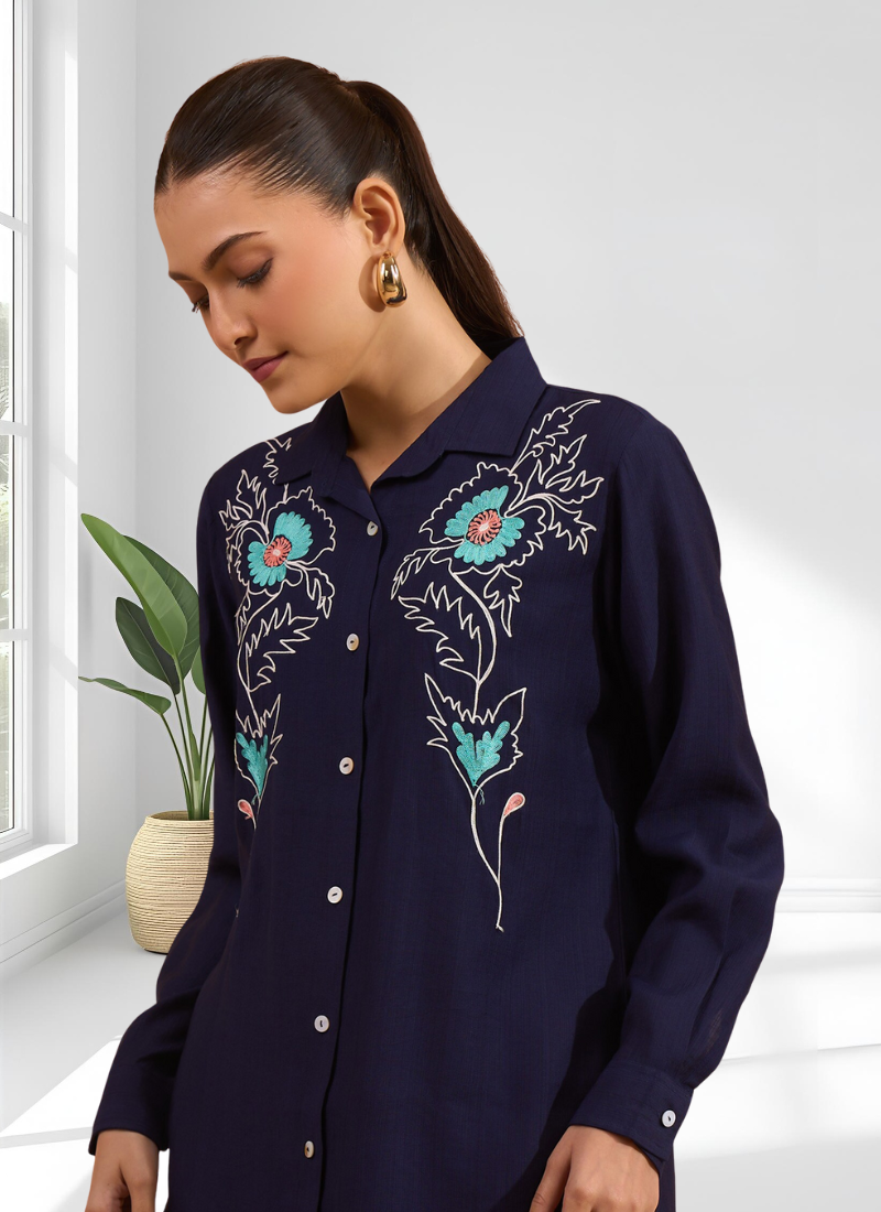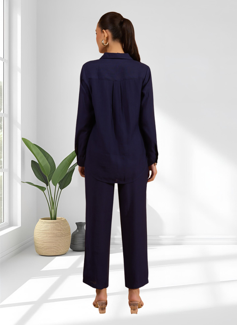| Product Name | Navy Blue Vertical Silk Shirt Pant For Women's | |