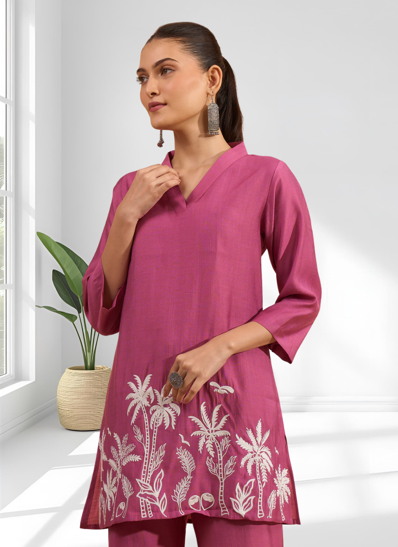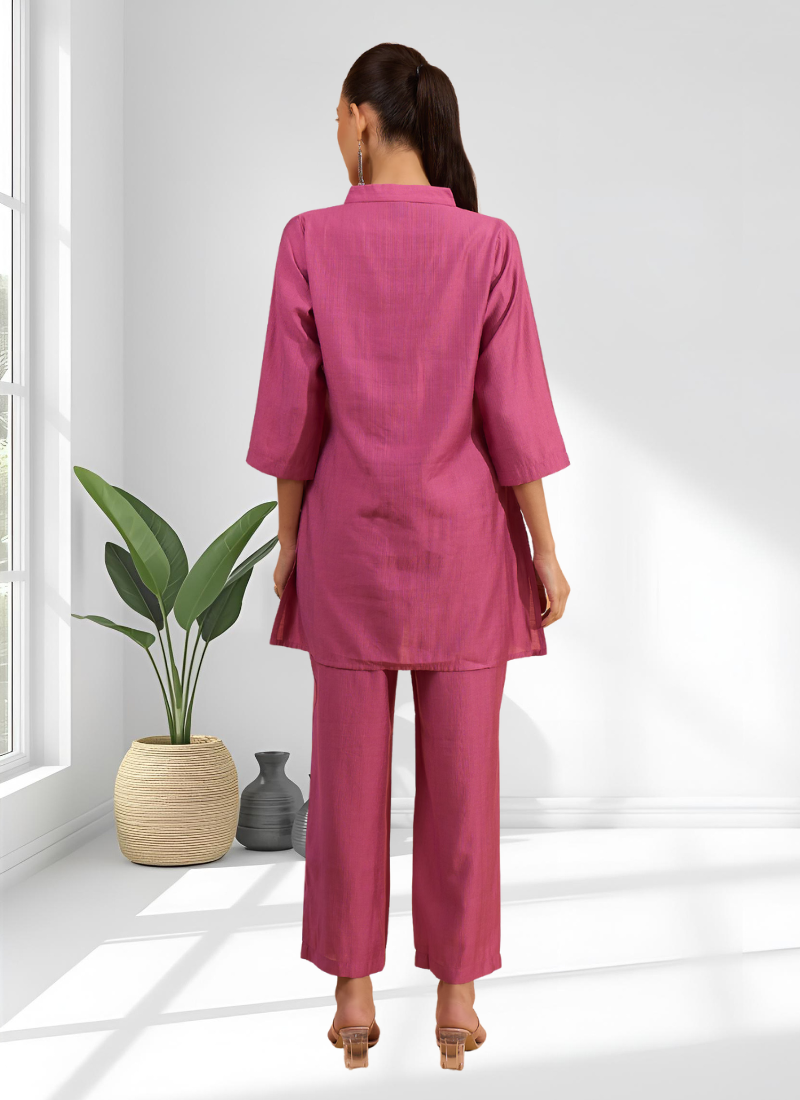| Product Name | Pink Vertical Silk Top With Pants For Women's | |
