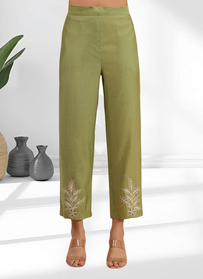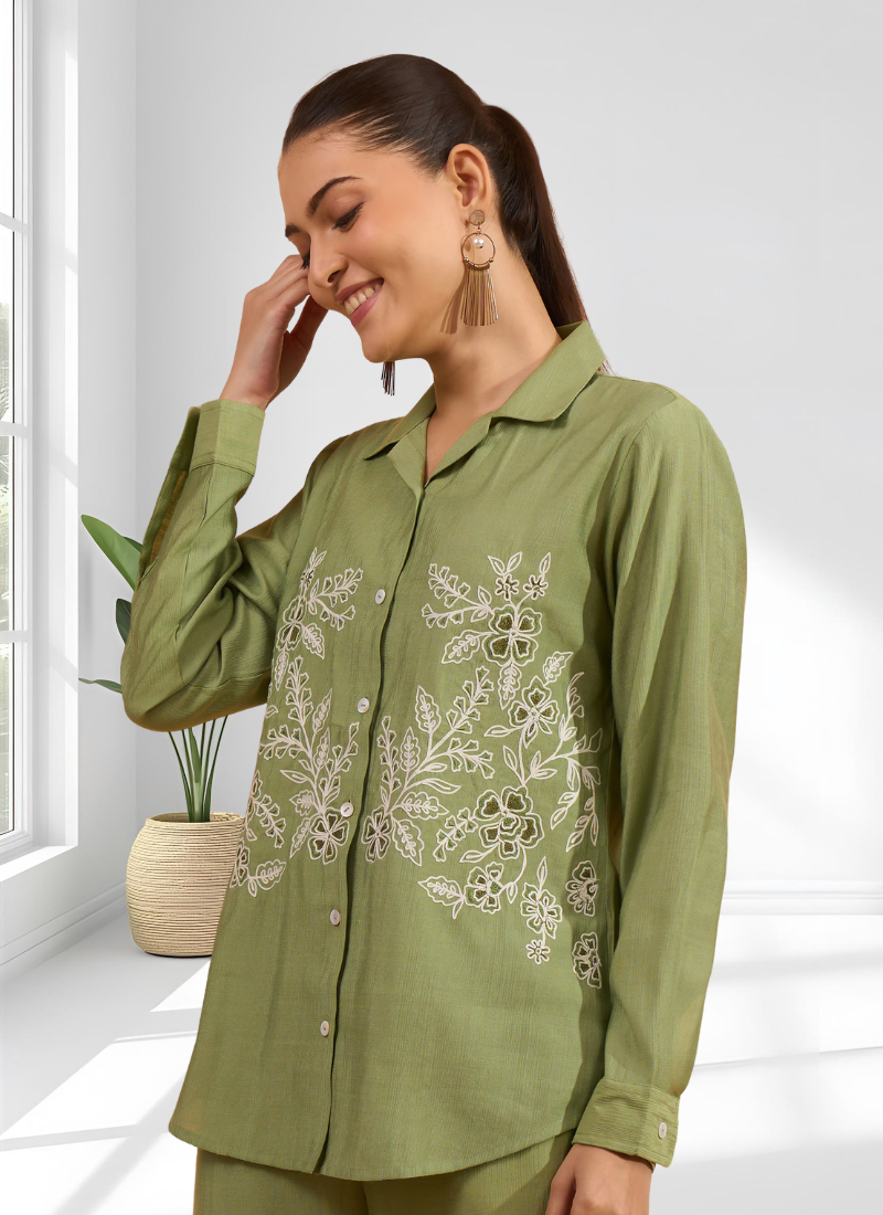 Pista green vertical silk shirt pant for women's