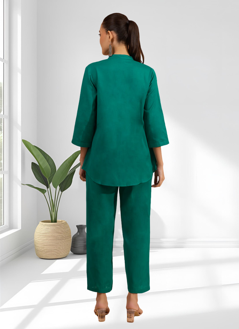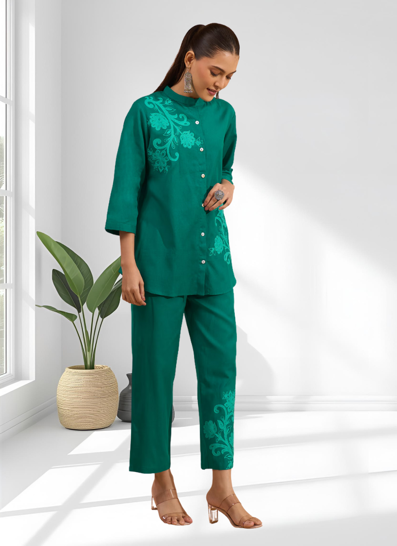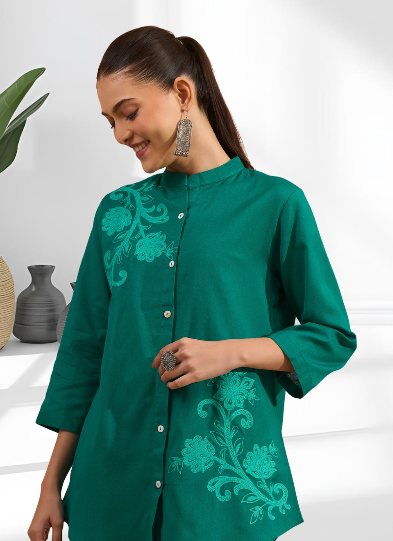 | Product Name | Rama Green Cotton Aari Work Shirt Pant For Women's | |