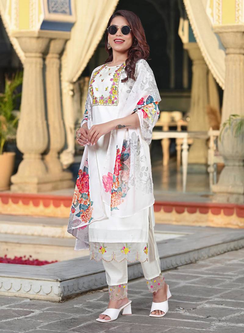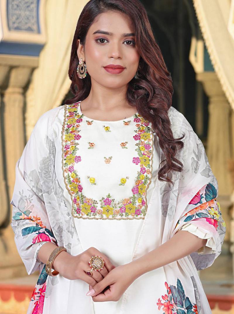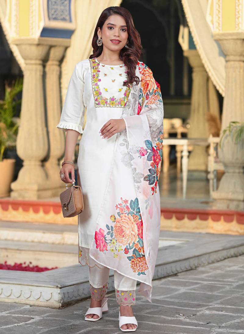 | Product Name | White Chanderi Embroidered Straight Kurta Pant And Dupatta Set | |