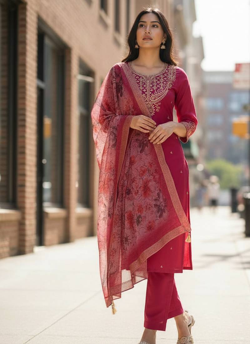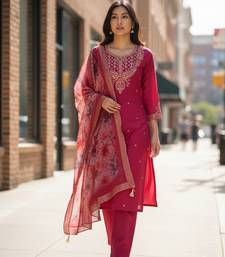 | Product Name | Pink Chanderi Silk Embroidered Straight Kurta Pant And Dupatta Set | |