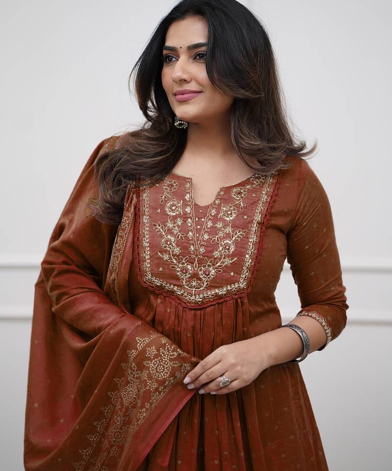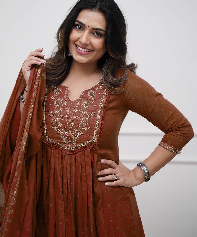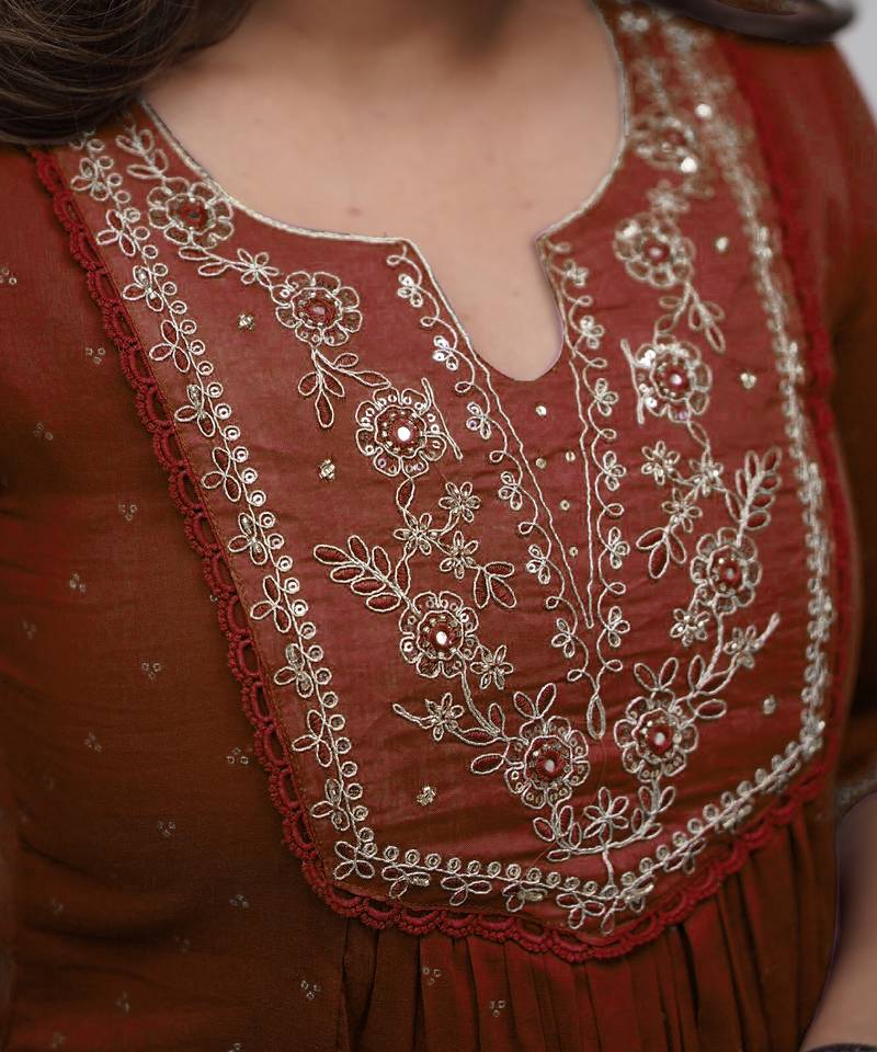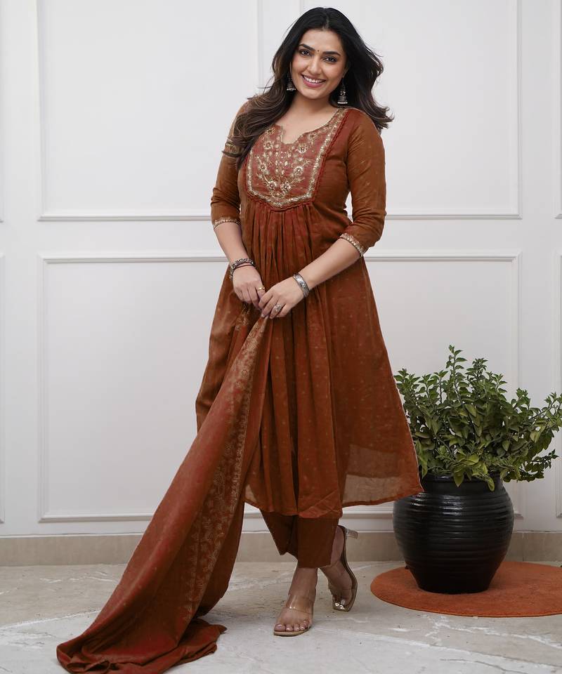 | Product Name | Brown Cotton Embroidered Straight Kurta Pant And Dupatta Set | |